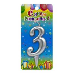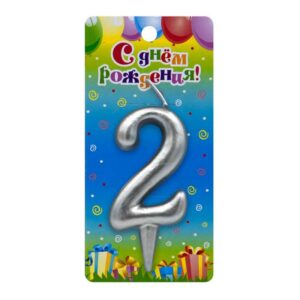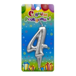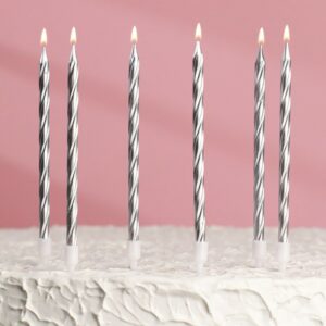 3006919 Свечи в торт «Металлик» , 14см, 6шт с подставкой, серебристые