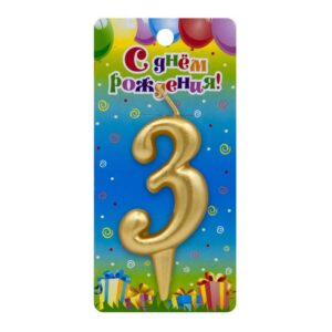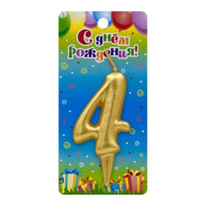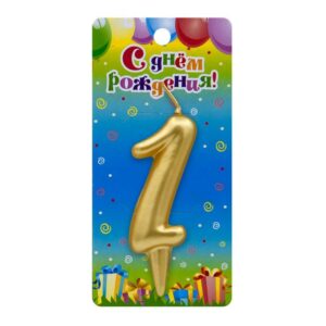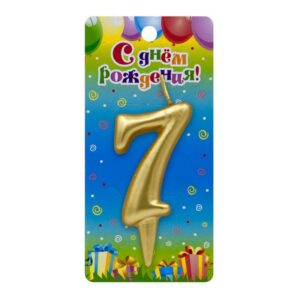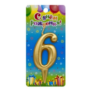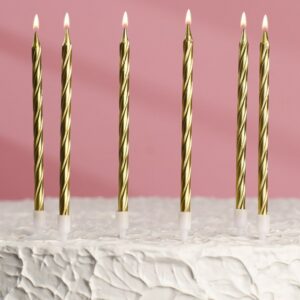 3006920 Свечи в торт «Металлик» , 14 см, 6шт с подставкой, золотистые
