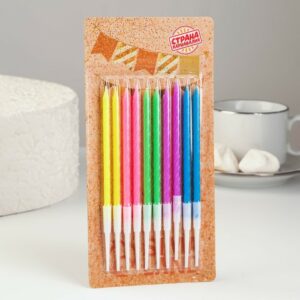 3006921 Свечи для торта «Неон», 10 шт, разноцветные, 14 см