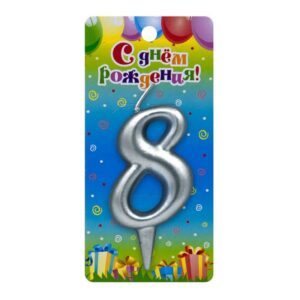 3138 Свеча тортовая цифра «8» серебряная