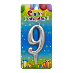 3139 Свеча тортовая цифра «9» серебряная
