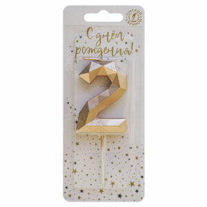 4272 Свеча тортовая цифра «2» «Многогранник» шампань