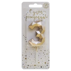 4273 Свеча тортовая цифра «3» «Многогранник» шампань