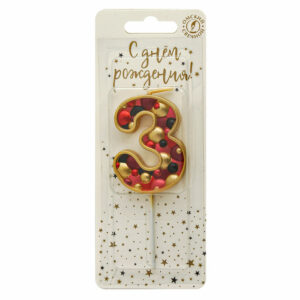 5573 Свеча тортовая цифра «3» пузырьки золото