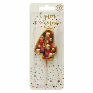 5574 Свеча тортовая цифра «4» пузырьки золото