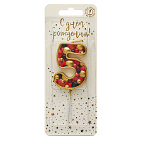 5575 Свеча тортовая цифра «5» пузырьки золото