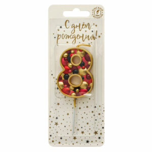 5578 Свеча тортовая цифра «8» пузырьки золото