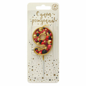 5579 Свеча тортовая цифра «9» пузырьки золото