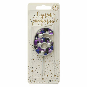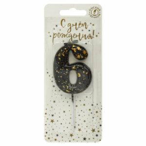 5636 Свеча тортовая цифра «6» черные брызги