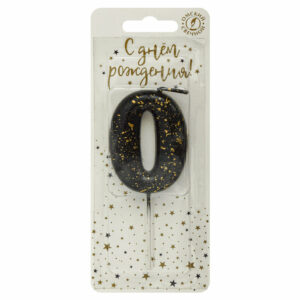5630 Свеча тортовая цифра «0» черные брызги