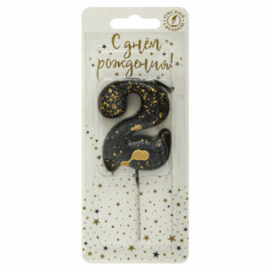 5632 Свеча тортовая цифра «2» черные брызги