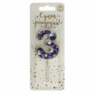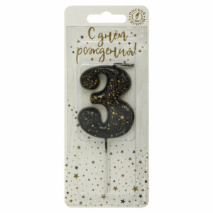 5633 Свеча тортовая цифра «3» черные брызги