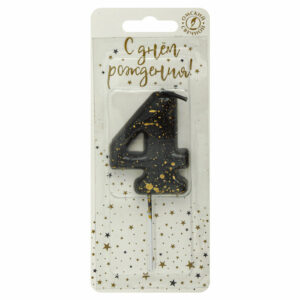 5634 Свеча тортовая цифра «4» черные брызги