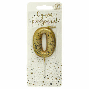 5650 Свеча тортовая цифра «0» золотые брызги