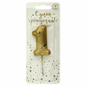 5651 Свеча тортовая цифра «1» золотые брызги