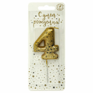 5654 Свеча тортовая цифра «4» золотые брызги