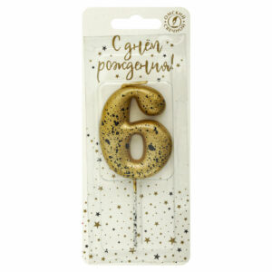 5656 Свеча тортовая цифра «6» золотые брызги