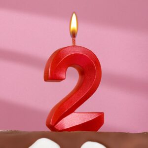 5928506 Свеча тортовая цифра «2» «Грань», красный металлик