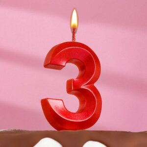 5928507 Свеча тортовая цифра «3» «Грань», красный металлик