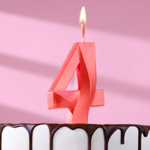 5928508 Свеча тортовая цифра «4» «Грань», красный металлик