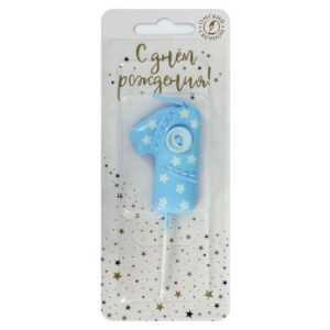 5781 Свеча тортовая цифра «1» голубая с пуговкой