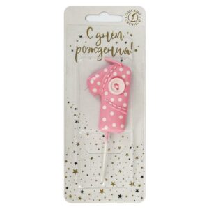 5791 Свеча тортовая цифра «1» розовая с пуговкой