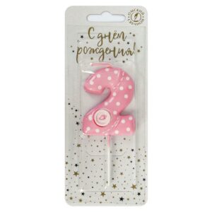 5792 Свеча тортовая цифра «2» розовая с пуговкой