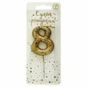 5658 Свеча тортовая цифра «8» золотые брызги