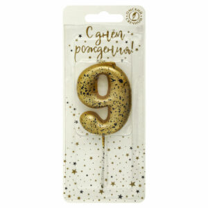 5659 Свеча тортовая цифра «9» золотые брызги