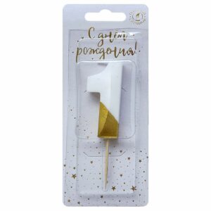 6501 Свеча тортовая цифра «1» бело-золотая витая