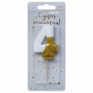 6504 Свеча тортовая цифра «4» бело-золотая витая