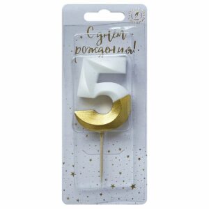 6505 Свеча тортовая цифра «5» бело-золотая витая