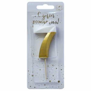 6507 Свеча тортовая цифра «7» бело-золотая витая