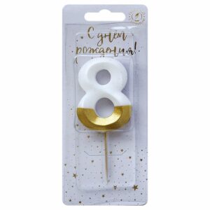 6508 Свеча тортовая цифра «8» бело-золотая витая