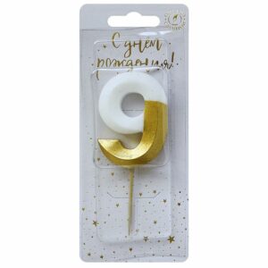6509 Свеча тортовая цифра «9» бело-золотая витая