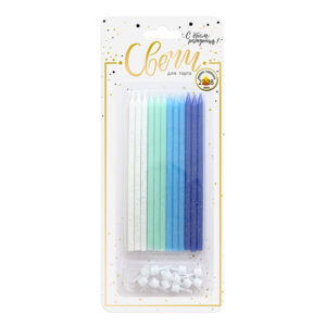 620221BG-B Свечи тортовые классические XL «Микс с глиттером» Голубой, 12шт