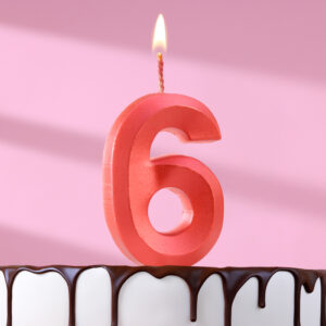 5928510 Свеча тортовая цифра «6» «Грань», красный металлик