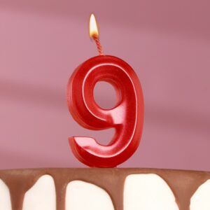 5928513 Свеча тортовая цифра «9» «Грань», красный металлик