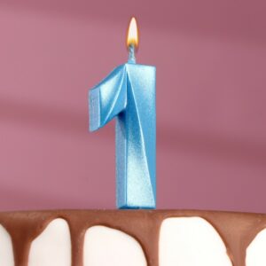 6536330 Свеча тортовая цифра «1» «Грань», голубой металлик