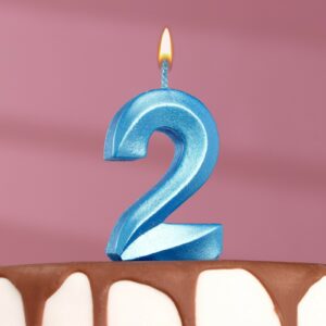 6536331 Свеча тортовая цифра «2» «Грань», голубой металлик