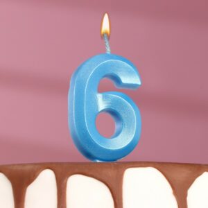 6536335 Свеча тортовая цифра «6» «Грань», голубой металлик