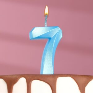 6536336 Свеча тортовая цифра «7» «Грань», голубой металлик
