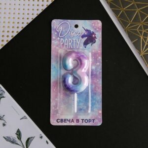 6990832 Свеча тортовая цифра «3» белый мрамор