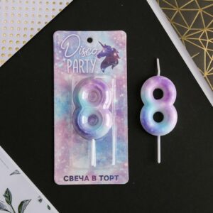6990837 Свеча тортовая цифра «8» белый мрамор
