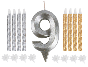 1502-6345 Свеча -цифра «9» Грань серебр+свечи 8шт