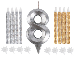 1502-6344 Свеча -цифра «8» Грань серебр+свечи 8шт