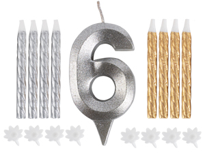 1502-6342 Свеча -цифра «6» Грань серебр+свечи 8шт