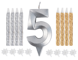 1502-6341 Свеча -цифра «5» Грань серебр+свечи 8шт