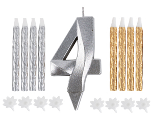 1502-6340 Свеча -цифра «4» Грань серебр+свечи 8шт