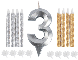 1502-6339 Свеча -цифра «3» Грань серебр+свечи 8шт